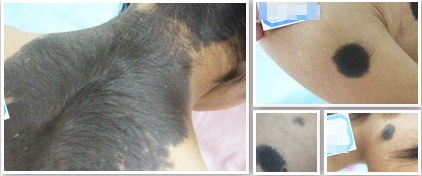 外科治疗: 一是采用将病损区皮肤磨去,或将病损区皮肤切除,较后植皮。这种治疗方法无疑会留下明显的瘢痕,如果植皮,所植的皮肤会非常不自然,即使较成功的手术,治疗的结果看上去尤如脸上“打了一个补丁”一样。