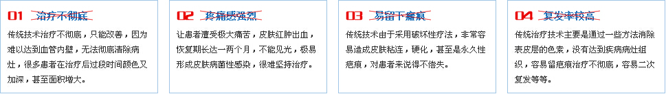 ◇冷冻治疗:治疗缺乏选择性,是从皮肤表面一层一层地由表及里地冻伤组织,由于病损部位深,所以冷冻治疗极易留下瘢痕。事实上冷冻治疗深度不够,难以达到理想的疗效。