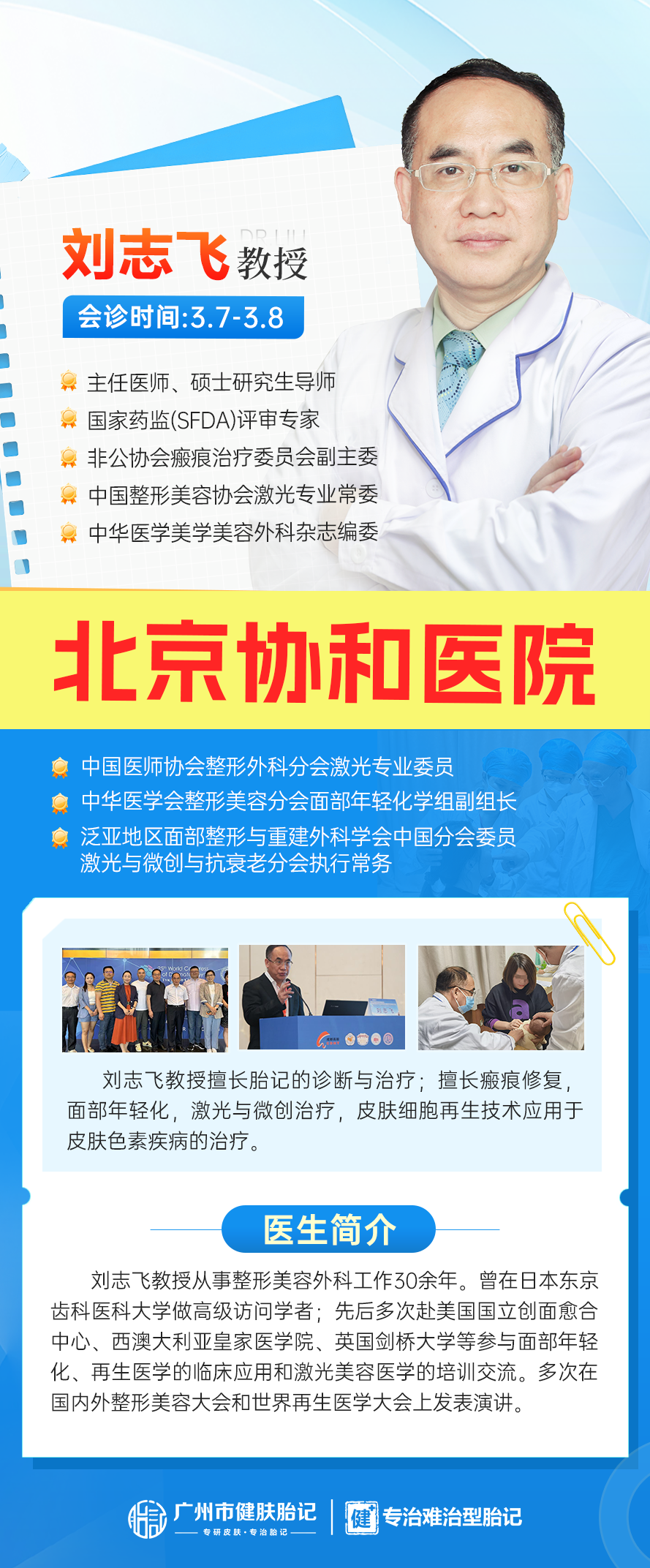 【名医会诊】3月7-8日,北京协和刘志飞教授广州健肤会诊,限时开启胎记诊疗!近日,为给胎记患者带来更优质的医疗服务与诊疗体验,广州健肤积极整合优质医疗资源,于3月7日至3月8日,盛情邀请北京协和医院刘志飞教授领衔会诊,开展一场备受瞩目的联合会诊活动,此消息在胎记诊疗领域引发广泛关注。
